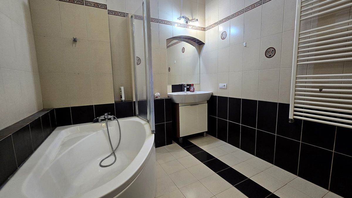- Parter: 3 pokoje, garderoba, umeblowana kuchnia, łazienka, przedpokój, wiatrołap